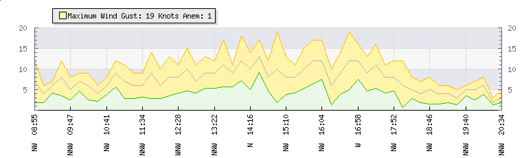 In the last few minutes the wind was North North West at an average speed of 4 knots, reaching up to 6 knots and a low of 2 knots. The gust strength is4 knots above the minimum speed |