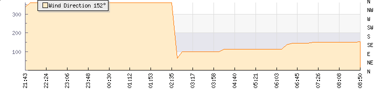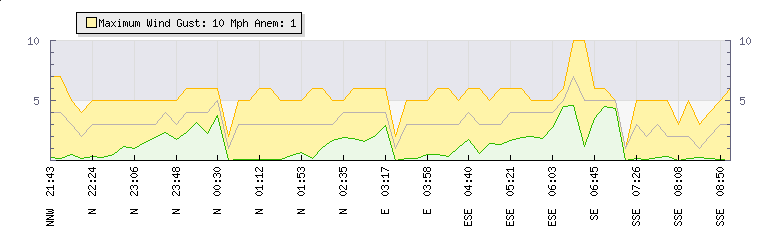 In the last few minutes the wind was Northerly at an average speed of 3 mph, reaching up to 5 mph and a low of 0 mph. The gust strength is5 mph above the minimum speed |