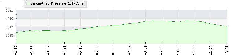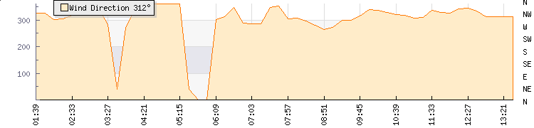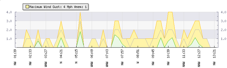 In the last few minutes the wind was North Westerly at an average speed of 1 mph, reaching up to 2 mph and a low of 0 mph. The gust strength is2 mph above the minimum speed |