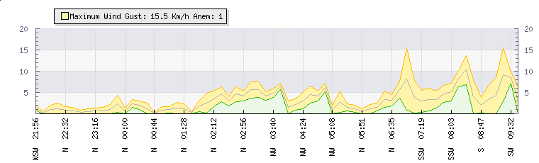 In the last few minutes the wind was Northerly at an average speed of 2 kmh, reaching up to 4 kmh and a low of 0 kmh. The gust strength is4 kmh above the minimum speed |