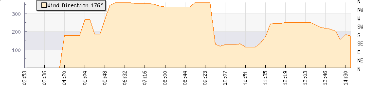 In the last few minutes the wind was Southerly at an average speed of 4 knots, reaching up to 7 knots and a low of 0 knots. The gust strength is7 knots above the minimum speed |