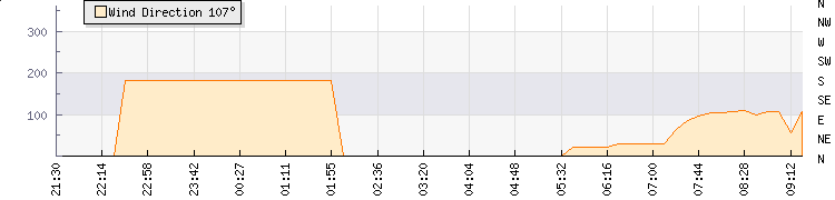 In the last few minutes the wind was East South East at an average speed of 8 mph, reaching up to 15 mph and a low of 1 mph. The gust strength is14 mph above the minimum speed |