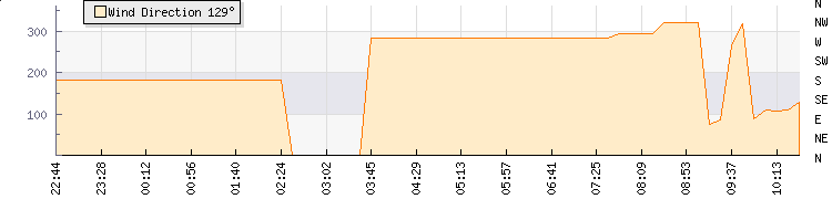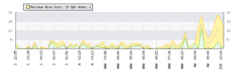 In the last few minutes the wind was North Westerly at an average speed of 2 mph, reaching up to 2 mph and a low of 1 mph. The gust strength is1 mph above the minimum speed |