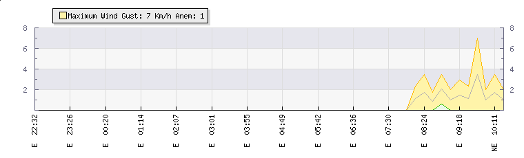 In the last few minutes the wind was South South East at an average speed of 1 kmh, reaching up to 2 kmh and a low of 0 kmh. The gust strength is2 kmh above the minimum speed |