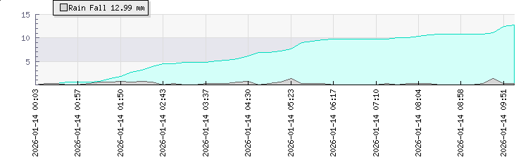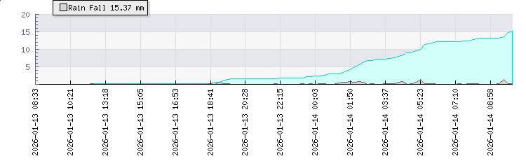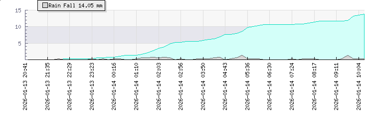 | Wind Gust: | 7 km/h | Min Temp: | 22.7 °C | Max Temp: | 23.8 °C | | Wind Average: | 4 km/h | Min Hum: | 98 % | Max Hum: | 99 % | |  |