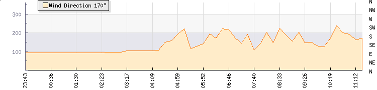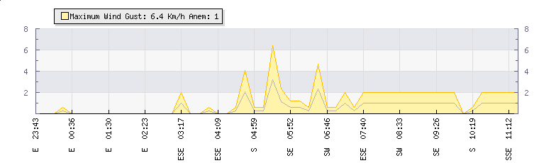 In the last few minutes the wind was South Easterly at an average speed of 1 kmh, reaching up to 2 kmh and a low of 0 kmh. The gust strength is2 kmh above the minimum speed |