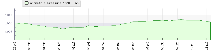 | Wind Speed: | 0|1|2 kmh | Wind Direction: | SE 128° | Temperature: | 24.1°C | | Wet Bulb: | 23.8°C | Discomfort: | 96 | Humidity: | 98% | | Rainfall Today: | 28.1mm | 12 hrs Rainfall: | 29.1mm | 24 hrs Rainfall: | 34.4mm | | Barometer: | 1009.3mb | Dew Point: | 23.7°C | Clouds AGL: | 135ft (41 m) | | Density-Alt: | 2343ft (714 m) | Fire Danger: | |