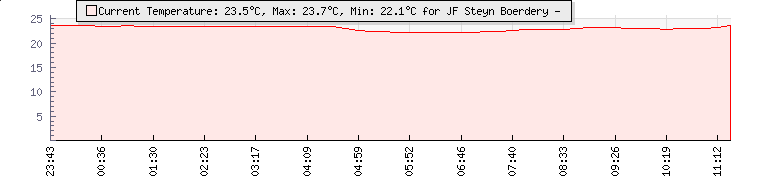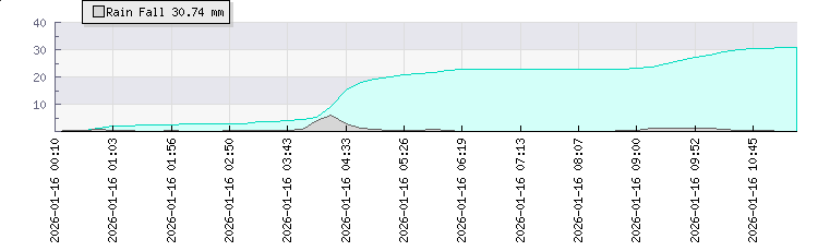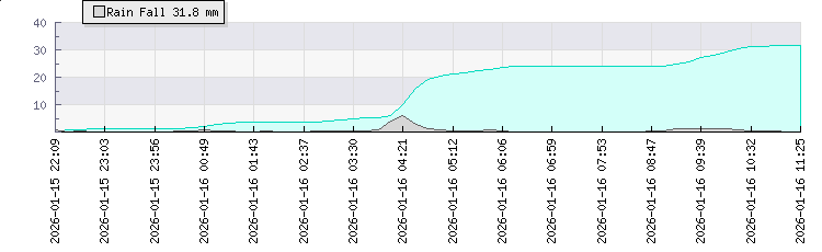 | Wind Gust: | 6 km/h | Min Temp: | 23.1 °C | Max Temp: | 24.5 °C | | Wind Average: | 3 km/h | Min Hum: | 98 % | Max Hum: | 100 % | |  |