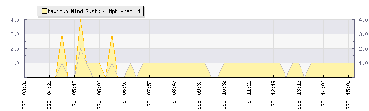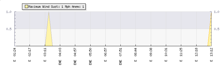 In the last few minutes the wind was Easterly at an average speed of 0 mph, reaching up to 0 mph and a low of 0 mph. The gust strength is0 mph above the minimum speed |
