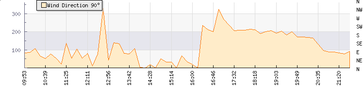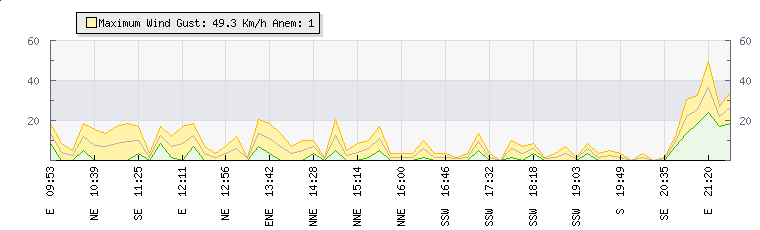 In the last few minutes the wind was West South West at an average speed of 2 kmh, reaching up to 3 kmh and a low of 0 kmh. The gust strength is3 kmh above the minimum speed |