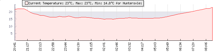 | GPS Co-ordinates: | S 27º 13' 08, E 26º 52' 35 | | ASL: | 4000 feet | | Sunrise / Sunset: | 05:19 / 18:33 | | Beaufort Scale: | Light Air |