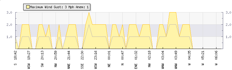 In the last few minutes the wind was Westerly at an average speed of 0 mph, reaching up to 0 mph and a low of 0 mph. The gust strength is0 mph above the minimum speed |