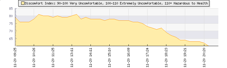 In the last few minutes the wind was South Westerly at an average speed of 20 kmh, reaching up to 27 kmh and a low of 12 kmh. The gust strength is15 kmh above the minimum speed |