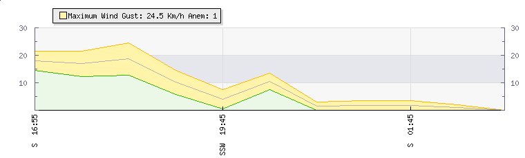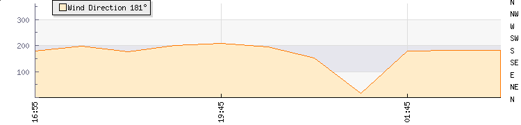 In the last few minutes the wind was Southerly at an average speed of 0 kmh, reaching up to 0 kmh and a low of 0 kmh. The gust strength is0 kmh above the minimum speed |