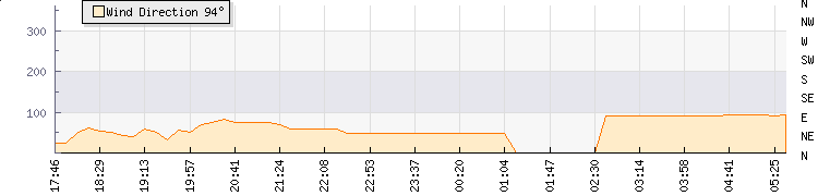 In the last few minutes the wind was Easterly at an average speed of 5 kmh, reaching up to 9 kmh and a low of 1 kmh. The gust strength is8 kmh above the minimum speed |