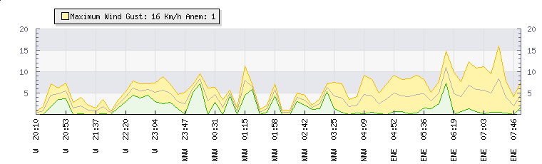 In the last few minutes the wind was Northerly at an average speed of 3 kmh, reaching up to 5 kmh and a low of 0 kmh. The gust strength is5 kmh above the minimum speed |