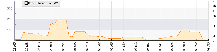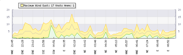 In the last few minutes the wind was Easterly at an average speed of 4 knots, reaching up to 6 knots and a low of 2 knots. The gust strength is4 knots above the minimum speed |