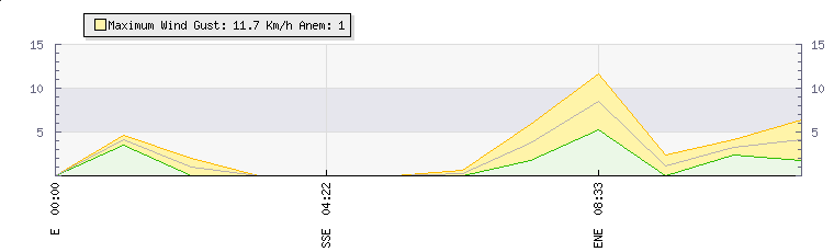 In the last few minutes the wind was North North West at an average speed of 1 kmh, reaching up to 2 kmh and a low of 0 kmh. The gust strength is2 kmh above the minimum speed |