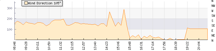 In the last few minutes the wind was Northerly at an average speed of 9 kmh, reaching up to 12 kmh and a low of 7 kmh. The gust strength is5 kmh above the minimum speed |