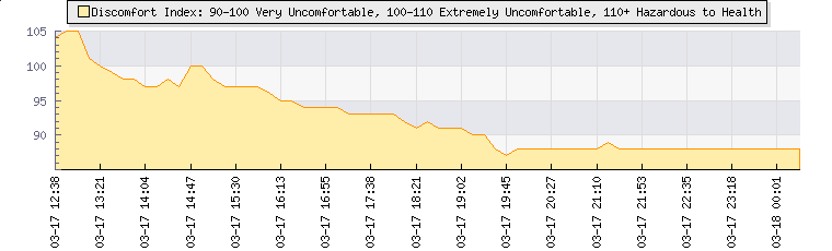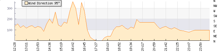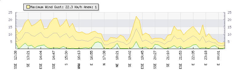 In the last few minutes the wind was Easterly at an average speed of 5 kmh, reaching up to 10 kmh and a low of 0 kmh. The gust strength is10 kmh above the minimum speed |