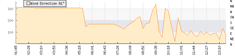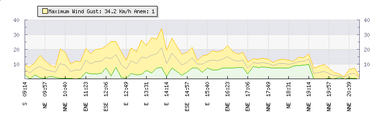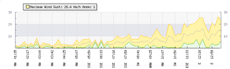In the last few minutes the wind was Northerly at an average speed of 3 kmh, reaching up to 5 kmh and a low of 0 kmh. The gust strength is5 kmh above the minimum speed |