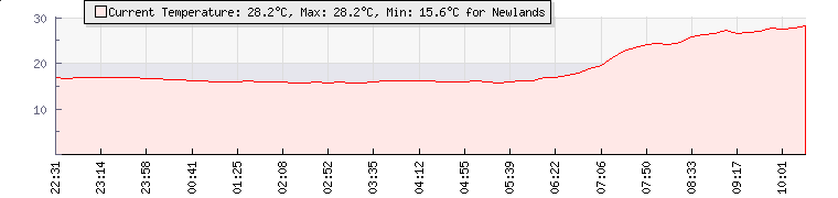 | GPS Co-ordinates: | S 33º 58' 55, E 18º 26' 23 | | ASL: | 360 feet | | Sunrise / Sunset: | 05:34 / 19:28 | | Beaufort Scale: | Light Air |