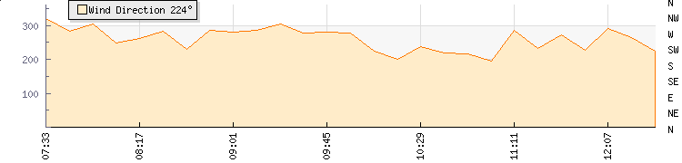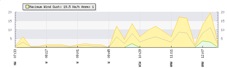 In the last few minutes the wind was South Westerly at an average speed of 1 kmh, reaching up to 2 kmh and a low of 0 kmh. The gust strength is2 kmh above the minimum speed |