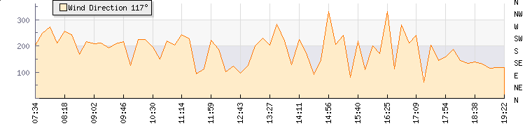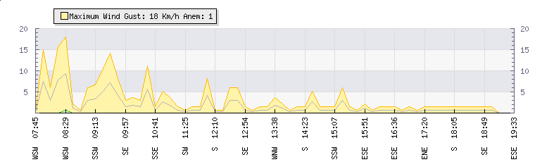 In the last few minutes the wind was South Easterly at an average speed of 1 kmh, reaching up to 2 kmh and a low of 0 kmh. The gust strength is2 kmh above the minimum speed |
