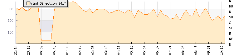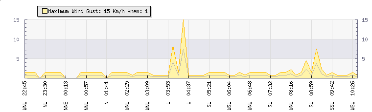 In the last few minutes the wind was South Westerly at an average speed of 1 kmh, reaching up to 2 kmh and a low of 0 kmh. The gust strength is2 kmh above the minimum speed |