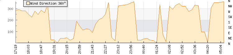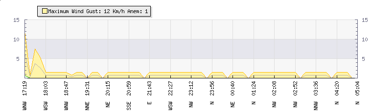 In the last few minutes the wind was North North West at an average speed of 1 kmh, reaching up to 2 kmh and a low of 0 kmh. The gust strength is2 kmh above the minimum speed |