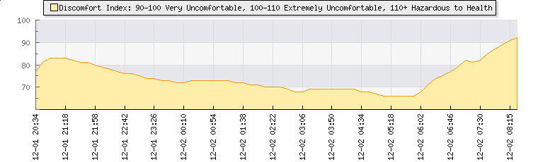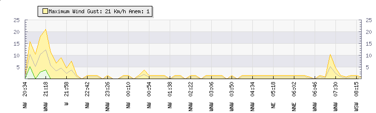 In the last few minutes the wind was West South West at an average speed of 1 kmh, reaching up to 2 kmh and a low of 0 kmh. The gust strength is2 kmh above the minimum speed |