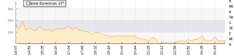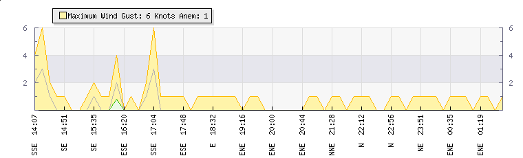 In the last few minutes the wind was North Easterly at an average speed of 0 knots, reaching up to 0 knots and a low of 0 knots. The gust strength is0 knots above the minimum speed |
