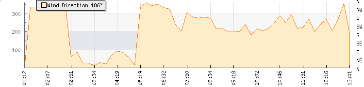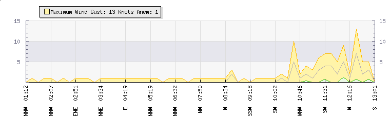 In the last few minutes the wind was South Westerly at an average speed of 3 knots, reaching up to 6 knots and a low of 0 knots. The gust strength is6 knots above the minimum speed |