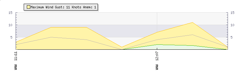In the last few minutes the wind was South Westerly at an average speed of 1 knots, reaching up to 1 knots and a low of 0 knots. The gust strength is1 knots above the minimum speed |
