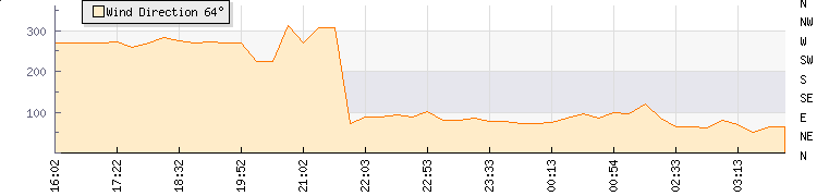 | Wind Gust: | 16 km/h | Min Temp: | 18.9 °C | Max Temp: | 19.7 °C | | Wind Average: | 14 km/h | Min Hum: | 58 % | Max Hum: | 60 % | |  |