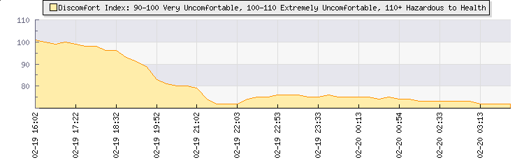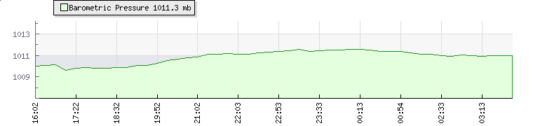 | Wind Speed: | 8|11|13 kmh | Wind Direction: | ENE 63° | Temperature: | 19°C | | Wet Bulb: | 13.9°C | Discomfort: | 73 | Humidity: | 58% | | Barometer: | 1011.3mb | Dew Point: | 10.5°C | Clouds AGL: | 3382ft (1031 m) | | Density-Alt: | 3648ft (1112 m) | Fire Danger: | |