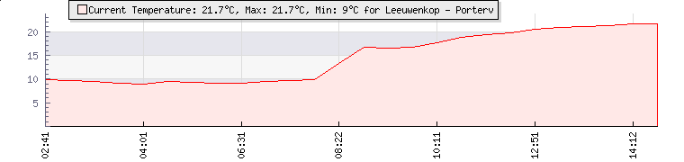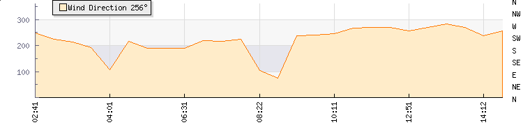 | Wind Gust: | 31 km/h | Min Temp: | 9 °C | Max Temp: | 20.9 °C | | Wind Average: | 20 km/h | Min Hum: | 57 % | Max Hum: | 79 % | |  |