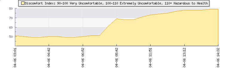 | Wind Speed: | 8|19|29 kmh | Wind Direction: | W 270° | Temperature: | 20.9°C | | Wet Bulb: | 15.4°C | Discomfort: | 78 | Humidity: | 57% | | Barometer: | 1018.8mb | Dew Point: | 12.1°C | Clouds AGL: | 3538ft (1078 m) | | Density-Alt: | 3635ft (1108 m) | Fire Danger: | |