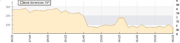 | Wind Gust: | 10 knots | Min Temp: | 23.1 °C | Max Temp: | 24.1 °C | | Wind Average: | 9 knots | Min Hum: | 42 % | Max Hum: | 44 % | |  |