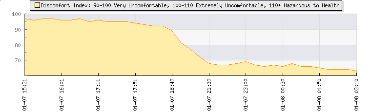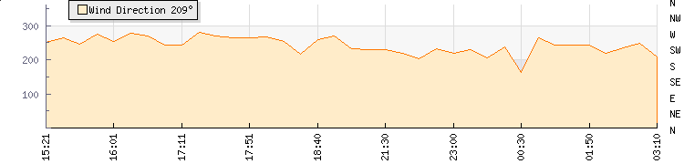 | Wind Gust: | 25 mph | Min Temp: | 15.9 °C | Max Temp: | 17.5 °C | | Wind Average: | 19 mph | Min Hum: | 86 % | Max Hum: | 93 % | |  |