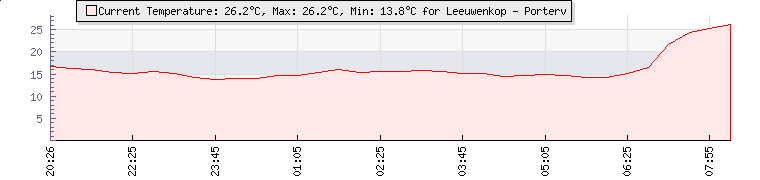 | Wind Gust: | 17 mph | Min Temp: | 14 °C | Max Temp: | 25.2 °C | | Wind Average: | 11 mph | Min Hum: | 51 % | Max Hum: | 67 % | |  |