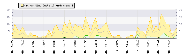 Weather Summary: In the last few minutes the wind was North North West at an average speed of 10 kmh, reaching up to 17 kmh and a low of 2 kmh. The gust strength is15 kmh above the minimum speed