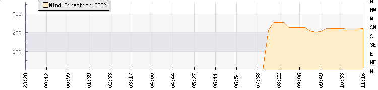In the last few minutes the wind was South South West at an average speed of 6 kmh, reaching up to 12 kmh and a low of 0 kmh. The gust strength is12 kmh above the minimum speed |
