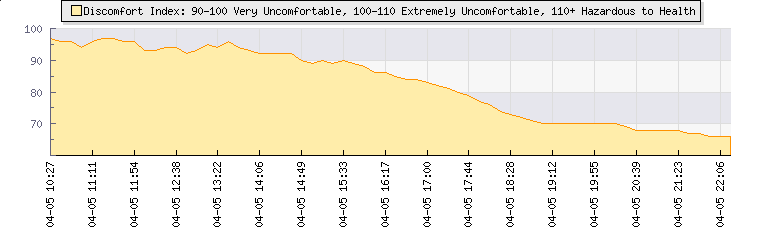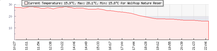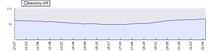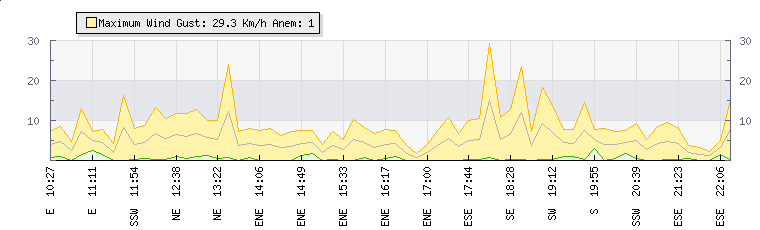 | Wind Gust: | 29 km/h | Min Temp: | 12 °C | Max Temp: | 28.1 °C | | Wind Average: | 15 km/h | Min Hum: | 49 % | Max Hum: | 85 % | |  |