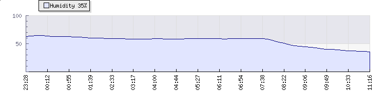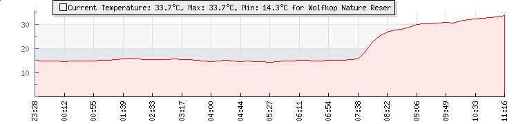 | Wind Gust: | 12 km/h | Min Temp: | 14.3 °C | Max Temp: | 30.8 °C | | Wind Average: | 6 km/h | Min Hum: | 40 % | Max Hum: | 64 % | |  |
