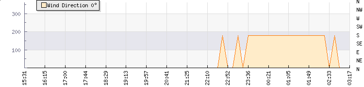 In the last few minutes the wind was Southerly at an average speed of 0 mph, reaching up to 0 mph and a low of 0 mph. The gust strength is0 mph above the minimum speed |