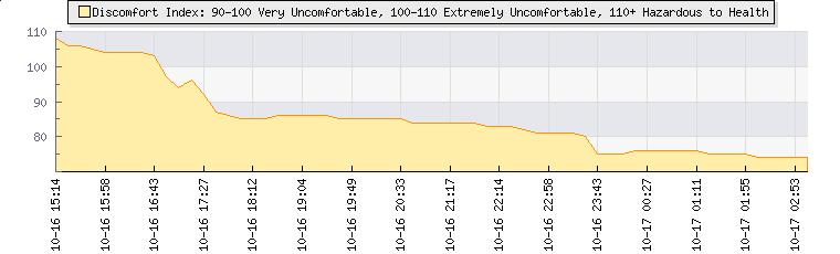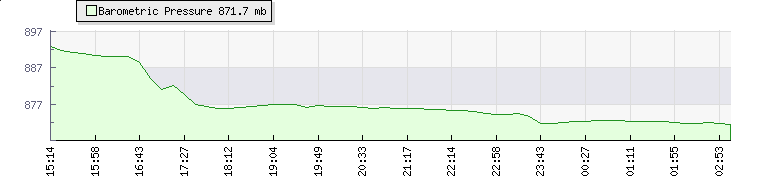 Wind Speed: | 6|12|18 kmh | Wind Direction: | SSE 162° | Temperature: | 18.6°C | Wet Bulb: | 16.1°C | Discomfort: | 76 | Humidity: | 79% | Rainfall Today: | 0mm | 12 hrs Rainfall: | 2.4mm | 24 hrs Rainfall: | 2.4mm | Barometer: | 872.6mb | Dew Point: | 14.9°C | Clouds AGL: | 1487ft (453 m) | Density-Alt: | 7306ft (2227 m) | Fire Danger: | |
