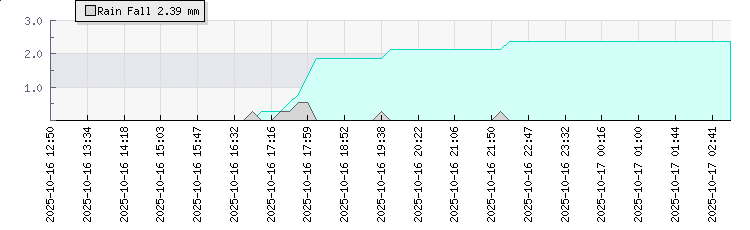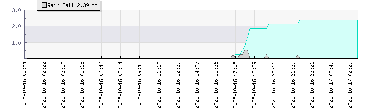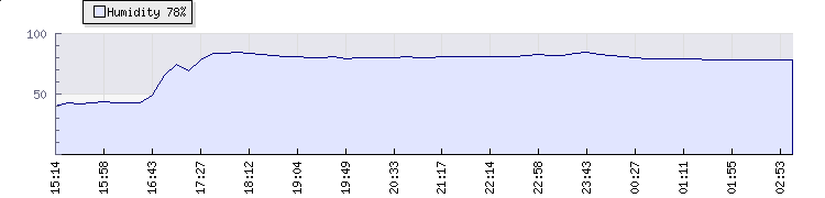 Wind Gust: | 18 km/h | Min Temp: | 18.4 °C | Max Temp: | 18.6 °C | Wind Average: | 13 km/h | Min Hum: | 79 % | Max Hum: | 81 % | |  |
