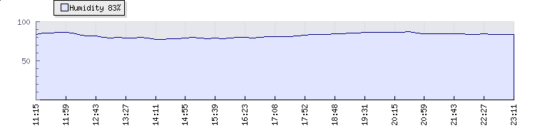 | Wind Gust: | 17 km/h | Min Temp: | 23 °C | Max Temp: | 25.7 °C | | Wind Average: | 12 km/h | Min Hum: | 79 % | Max Hum: | 87 % | |  |