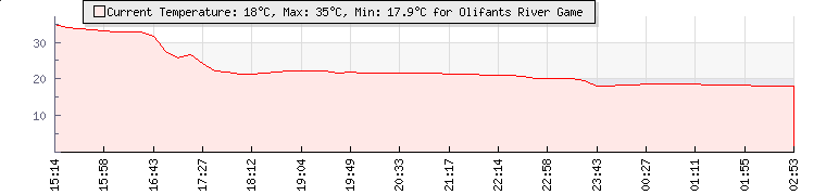 GPS Co-ordinates: | S 24º 9' 04, E 31º 2' 01 | ASL: | 1335 feet | Sunrise / Sunset: | 05:22 / 18:01 | Beaufort Scale: | Gentle Breeze |